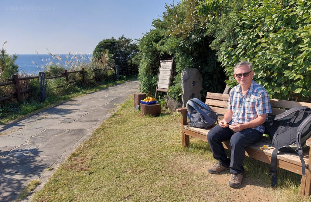 As we hiked on, we reached our far point of our 2024 Olle hike. For a report on our hike from here of Olle 5, 6, and 7 to Seogwipo, look here.