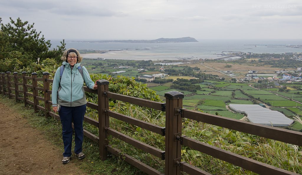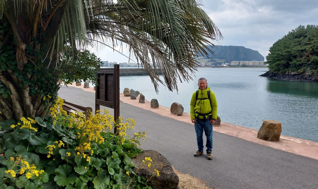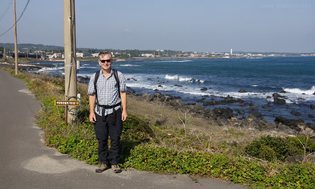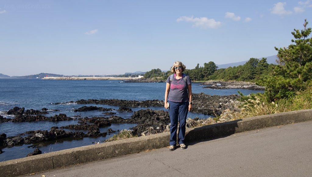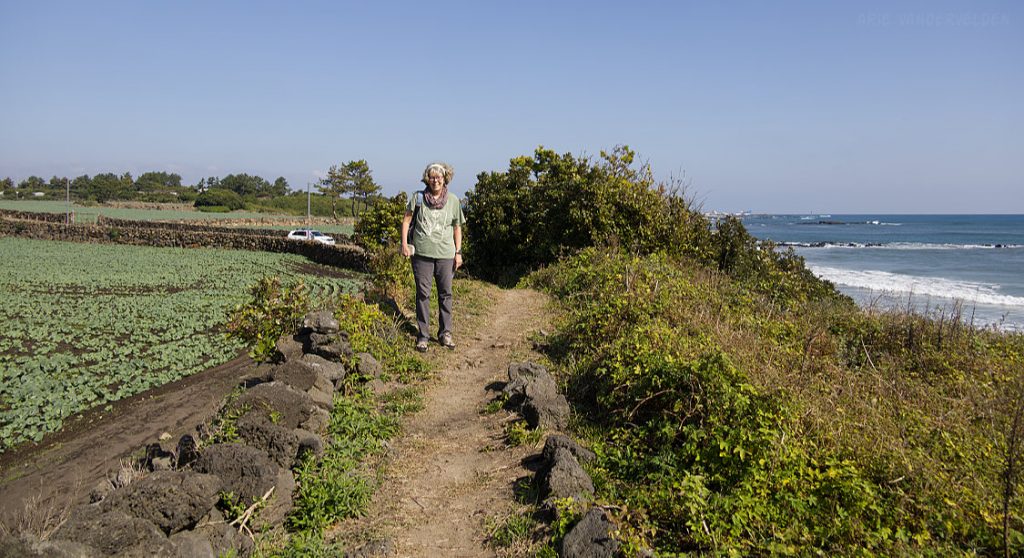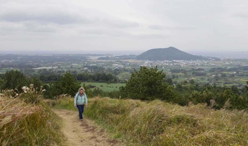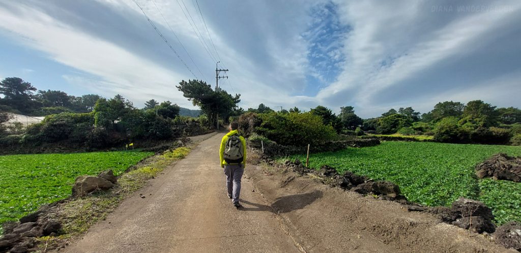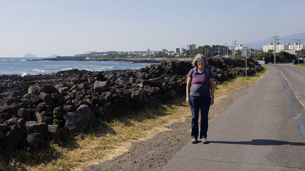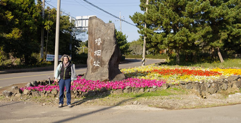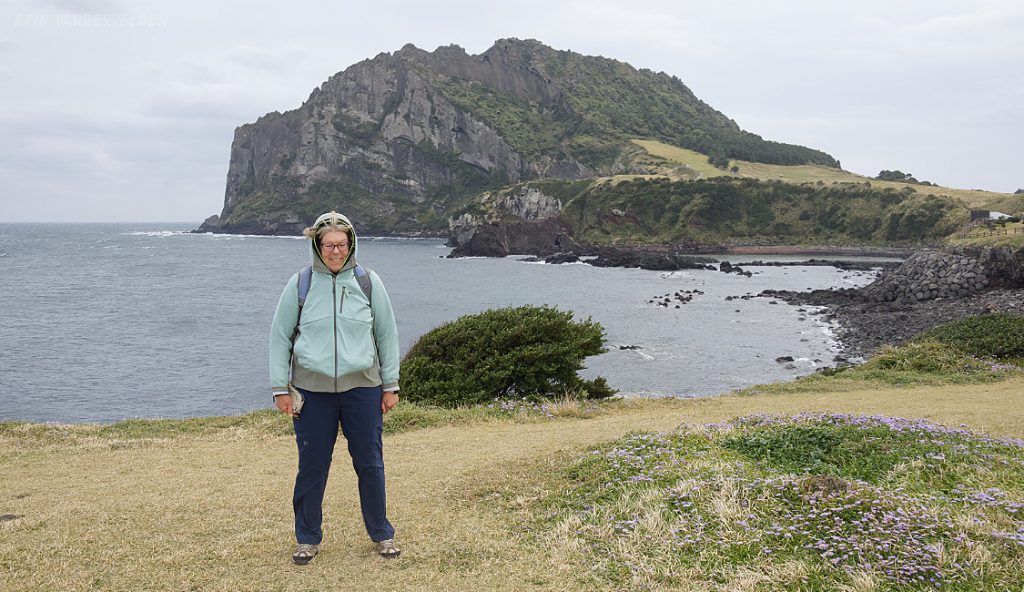 Later that afternoon we went out again. Instead of turning left we turned right, towards Seongsan town and Ilchulbong Oreum. The top of Ilchulbong Oreum is a popular place to see the sunrise. It was very windy when we approached Ilchulbong, and we decided to climb it another day. The trail to the top isn’t part of Olle 1 anyways.