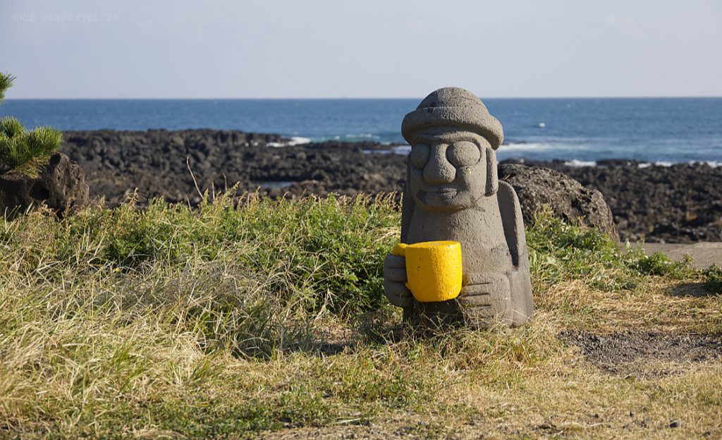 Even a Dol Hareubang has to have his cuppa joe.