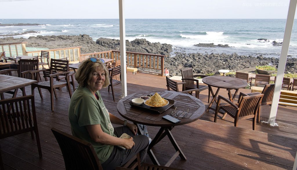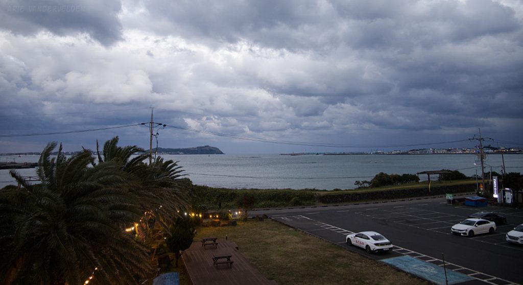 For the Olle trails at the eastern tip of Jeju Island, we based ourselves at Arumdaun Resort, a hotel just outside of Seongsan. Most of the time we stayed here the weather was stormy, with dark clouds and high winds. Aside from a few showers and some drizzle, there was not much precipitation so we were good to go for hiking. Our room had a nice view of the ocean, and the Olle 1 trail ran right along the shoreline.
