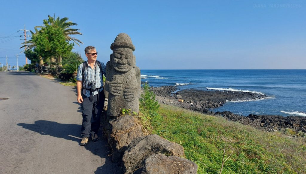 A Dol Hareubang stands guard outside of Jueodong Port. Dol Hareubang are a symbol of Jeju island. The origin of these lava stone statues is shrouded in mystery. I previously wrote about Dol Hareubang when reporting on our 2024 visit.