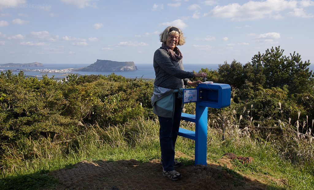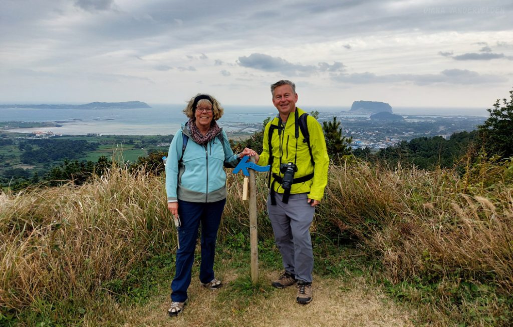 There were a few Korean hikers on the summit, and despite the language barrier we took turns taking each other’s pictures. Note the Olle trail signpost.